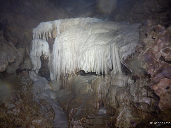Ogni tanto si incontrano questi spettacolari festoni di concrezione che meritano una sosta.