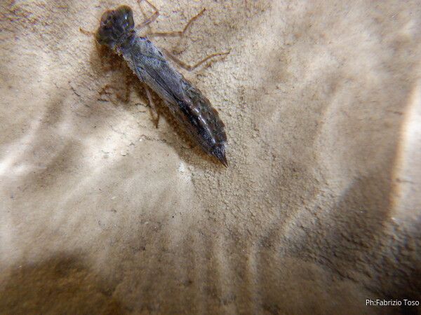 Continuando la nostra esplorazione ci addentriamo sempre più a fondo per raggiungere diverse altre stanze. Nel mentre riusciamo ad individuare due autoctoni a cui chiediamo informazioni. Un gamberetto minuscolo di cui non ricordo il nome e un altro abitante di cui non ricordo il nome ma che posso mostrare nella foto sottostante, ma credo fosse una larva. Appena Luca lo prende in mano si immobilizza e sembra morto. Ma quando viene riportato in acqua ricomincia a muoversi come se nulla fosse.