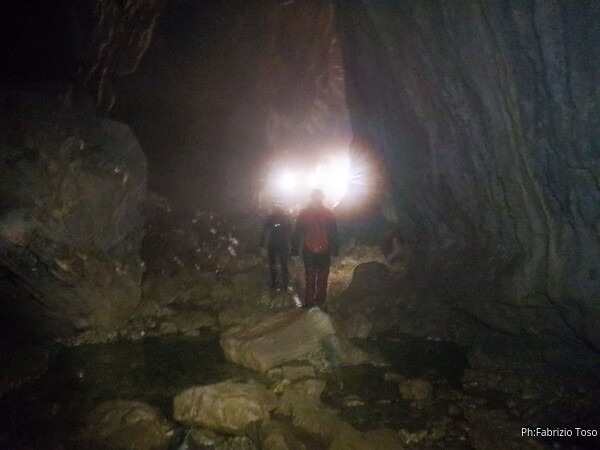Proseguiamo. Federica mi chiede un paio di volte quanto manca, probabilmente ha un po’ freddo, ma non se ne lamenta. Non mi preoccupo, per fortuna ho pronto un rimedio per lei. La informo, non so di preciso, ma ora saremo almeno a 2/3 della grotta. Non manca molto a Pastena.