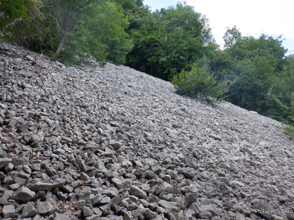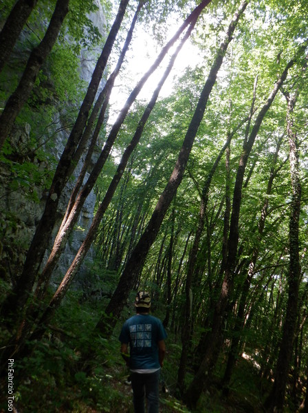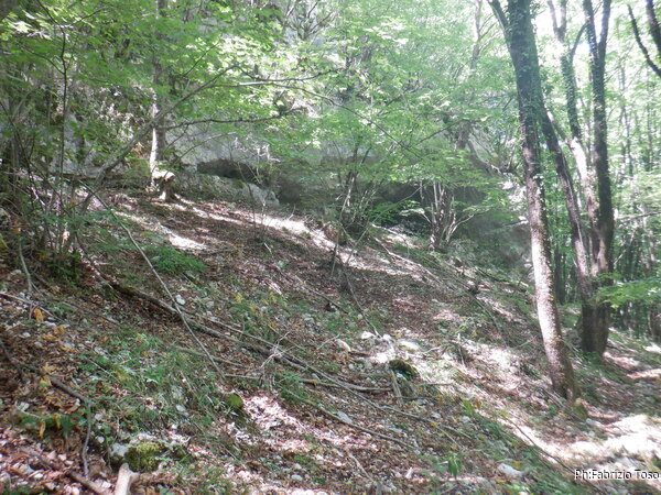 Il cammino si fa sempre piu’ impervio, ogni tanto incontriamo degli insidiosissimi ghiaioni. Il sentiero che seguiamo probabilmente e’ stato tracciato da animali, infatti ogni tanto il passaggio sul sentiero ci e’ impedito da rami fronzuti che sono alti meno di mezzo metro da terra.