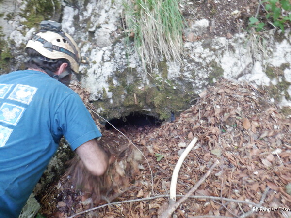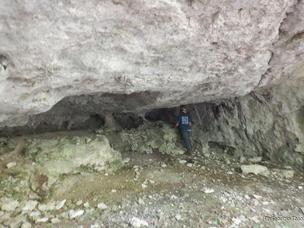 Gabriele prende la testa del gruppo, io e Luna seguiamo. E’ quindi Gabriele a notare per primo un buco. A prima vista non sembra migliore di altri appena visti, pero’ meglio verificare.