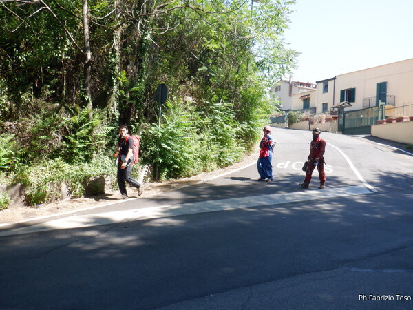 Tutti pronti? Ok, si va. Il caldo si fa sentire ma andiamo spediti verso la grotta dove ci attende il fresco.