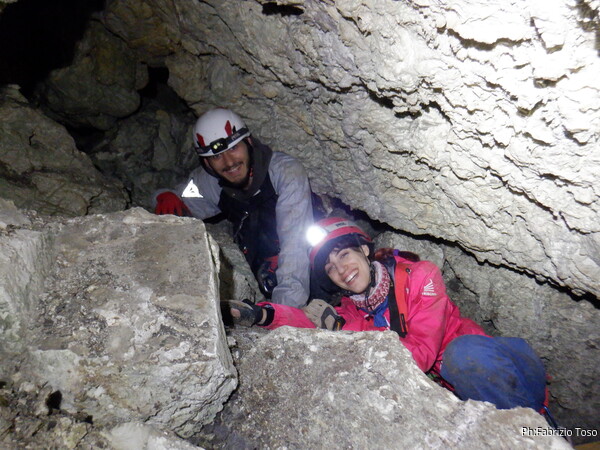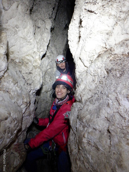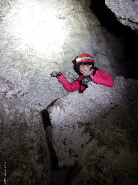 Non posso andare oltre. Sapere che Federica e’ incastrata in quella nicchia non mi lascia tranquillo. Ho visto quanto basta. Ci sono delle correnti d’aria su cui mi piacerebbe investigare ma sara’ per un’altra volta. Propongo a Luca di tornare indietro e vedo che accetta con piacere. Al ritorno troviamo una sorpresa, Federica si e’ stancata della sua scomoda nicchia ed e’ avanzata fino allo spiazzetto che le avevo proposto. Meno male, anche se avrei preferito esserci mentre si spostava.