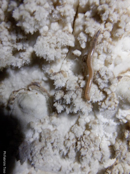 C’e’ un passaggio in cui ci si deve abbassare, nel farlo quasi vado a dare una capocciata a un millepiedi. Per scusarmi gli dedico un set di fotografie. Lui se ne frega altamente e continua il suo cammino senza degnarmi di attenzione.