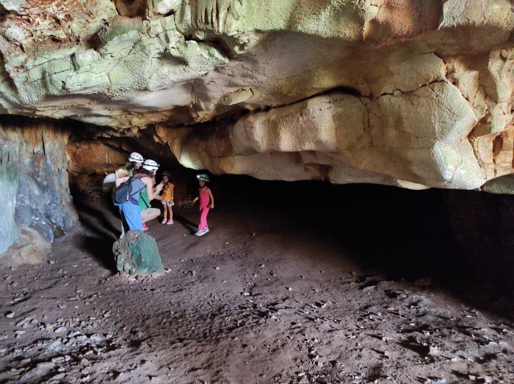 Antonio ci intrattiene raccontandoci della esplorazione della grotta. Dall’ingresso ci sono 2 rami, quello piu’ evidente e’ stato esplorato per primo ma era solo di interesse speleologico. Il secondo ramo, piu’ angusto e’ quello dove e’ poi stato ritrovato il cranio dell’uomo che l’ha resa famosa.
