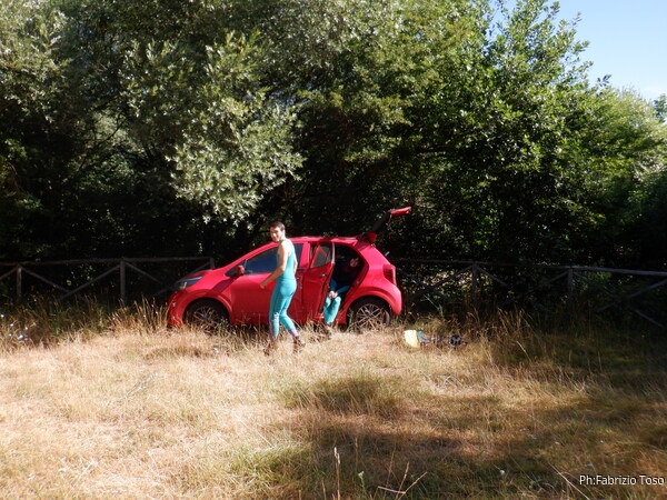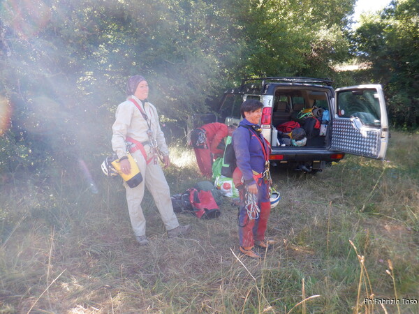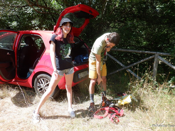 Eccoci quindi al solito parcheggio. Prima di cambiarmi faccio un giro di foto. Qua abbiamo Luca e Federica. Federica annuncia subito che ieri sera e’ uscita con amici e ha fatto…oggi! Si dichiara molto stanca ma pronta per visitare questa grotta.
