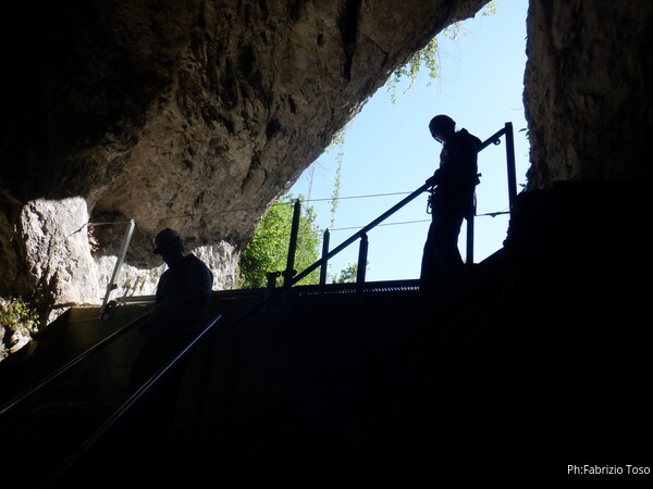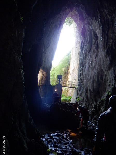 Sono pronto. Vado a raggiungere i miei amici. Mi soffermo solo un attimo per immortalare lo spettacolare portale d’ingresso della grotta. Me lo chiedo ogni volta, chissa’ che cosa ha provato lo speleo che lo ha visto per la prima volta…un bel batticuore, immagino.