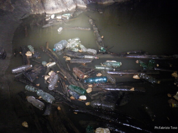 Andiamo avanti. Il livello dell’acqua e’ talmente basso che oggi l’acqua scorre dal sifone verso il lago della monnezza e non viceversa come dovrebbe.
