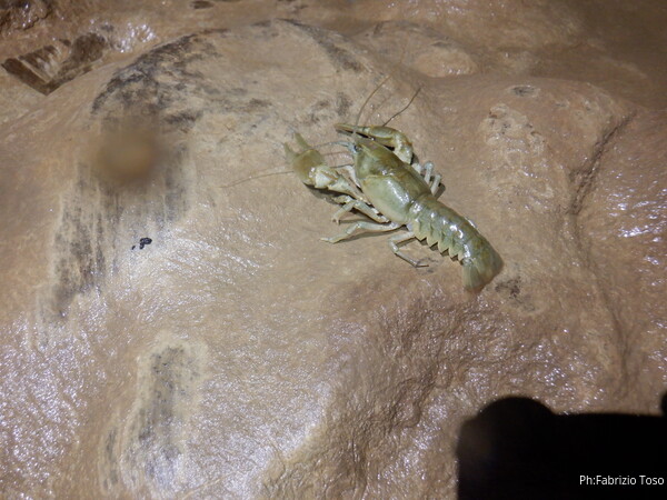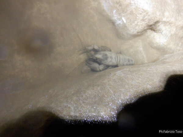 Tornando indietro Luca, il nostro animalologo, ci fa notare la presenza di alcuni gamberi. Ci fermiamo per far loro della foto. Questo, il primo e’ piu’ vanitoso e si lascia fotografare fuori dell’acqua.