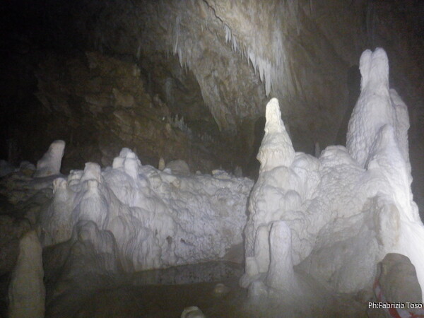 Questa gita prende “vita” grazie al fatto che sono per qualche giorno in vacanza a Tagliacozzo e che il 9 e 10 Luglio c’e’ il “Raduno Abruzzese Grotte di Pietrasecca”. In questi giorni hanno aperto al pubblico speleologico varie grotte solitamente interdette. Potevo scegliere tra grotte bellissime come quella del Cervo, quella di Luppa e l’Ovito. La grotta del Cervo e’ stata una delle mie prime grotte, quando era ancora in esplorazione. Pero’ era a numero chiuso e probabilmente affollatissima, La grotta di Luppa, bella anche lei ma spero di poterne organizzare la visita anche in un prossimo futuro. Alla fine scelgo l’Ovito, e’ molto bella, e’ quella a cui sono piu’ affezionato e penso piacera’ anche ai miei amici.