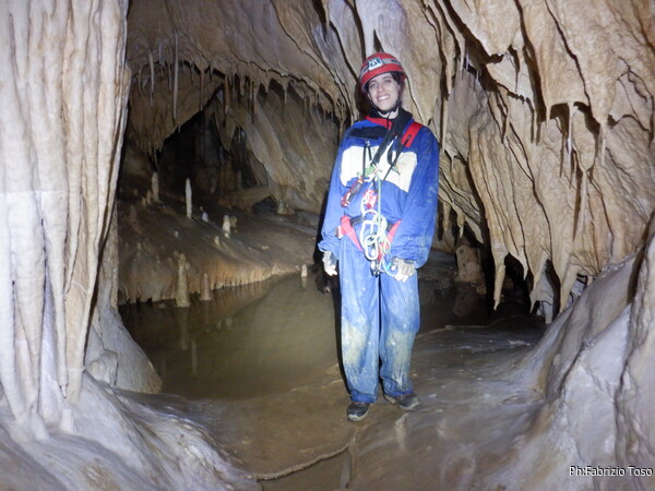 Mentre ci avviamo verso la parte piu’ acquatica faccio foto ed importuno i miei amici parlando a vanvera di tutto quel che mi passa per la mente a proposito della grotta.