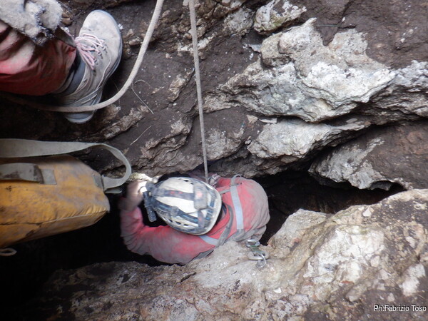 Con Gabriele di nuovo a scavare il cunicolo soffiante che di volta in volta alimenta e quindi vanifica i nostri sogni esplorativi.