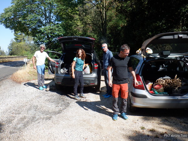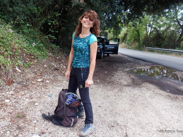 Scherzi a parte, dopo una tranquilla colazione da RobyBar ci spostiamo allo spiazzo vicino la grotta per prepararci. Diana si ritira nei propri appartamenti per prepararsi degnamente al cimento. Ecco il gruppo che oltre a me fara’ da scorta a Diana.