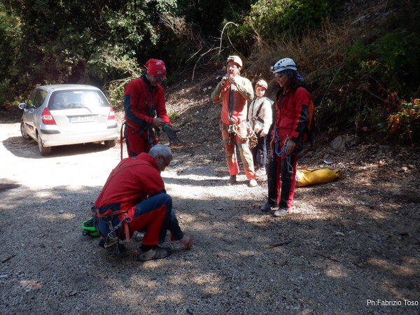 Con Federico ci eravamo ripromessi di organizzare una “pretarata” quando io fossi stato in vacanza a Montebuono. L’occasione giusta e’ proprio oggi. A noi si sono uniti alcuni amici del suo gruppo, le Talpe di Rieti. Una presenza eccellente visto che si tratta di Paola, Armando e Roberto, tre ex-presidenti del gruppo. Ma la vera vip di questa uscita rimane Diana, l’uscita l’abbiamo organizzata in suo onore, o meglio perche’ ella ci concedesse l’onore di venire in grotta con lei.