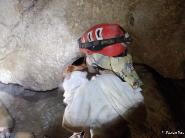 Ecco Diana al passaggio del cunicolo prima del pozzetto.