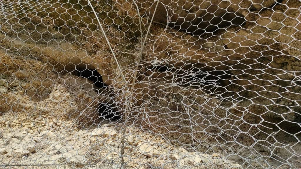 Mi fermo di nuovo poco sopra Rocchette a vedere un buco in parete. La salita e’ complicata ma alla fine riesco ad arrivare nei pressi. Cerco inutilmente un passaggio tra le maglie della rete messa a protezione ma anche qua devo rassegnarmi e desistere.