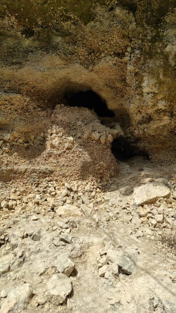 Con fiducia infinita e curiosamente chino con una mano a sfiorare il terreno seguo l’aria. Salgo per almeno 30 metri fino ad un piccolo spiazzo dove finalmente le mie fatiche e la fiducia vengono ripagate. Ecco l’ingresso della grotta.