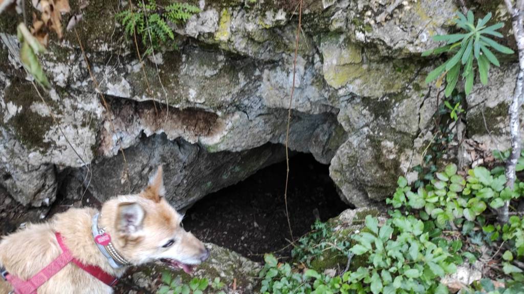 Anche cosi’ la ricerca sembra vana, ma non perdo le speranze, non ancora. Luna mi segue senza capire cosa io stia cercando con tanto impegno ma a lei va bene cosi’, le piace scorrazzare per il bosco. Pero’ ora sono quasi le 2 del pomeriggio e fa molto caldo, mi fermo per bere e per far bere Luna. Prima di ripartire mi chino per allacciarmi una scarpa quando sento una leggera corrente di aria fredda vicino al terreno. Il cuore mi accelera. Una corrente di aria fredda in questo caldo infernale vuol dire una cosa sola: Grotta!