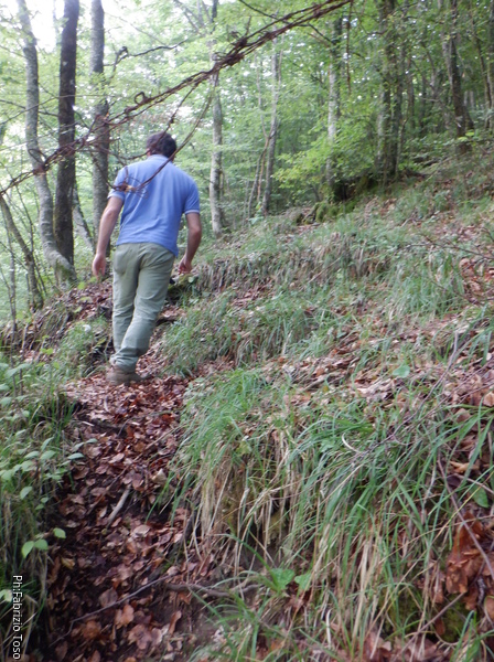 Quando siamo tutti pronti partiamo. Gabriele prende il sentiero in salita con passo deciso.