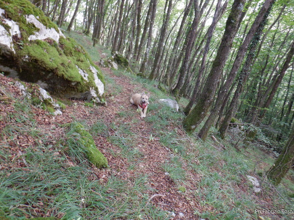 Luna ha sfogato la sua voglia di correre quindi ora quando vede che ci fermiamo a fare le cose strane che facciamo, lei si accuccia comodamente a gustarsi il fresco del bosco.
