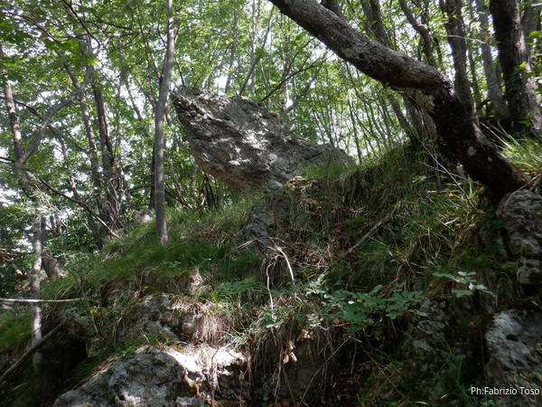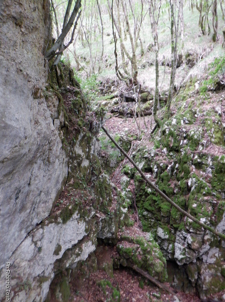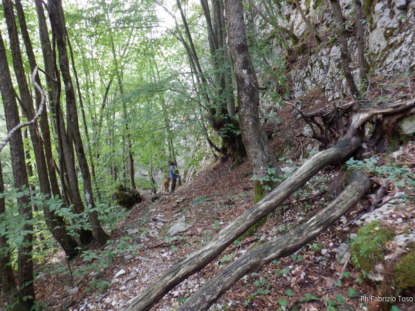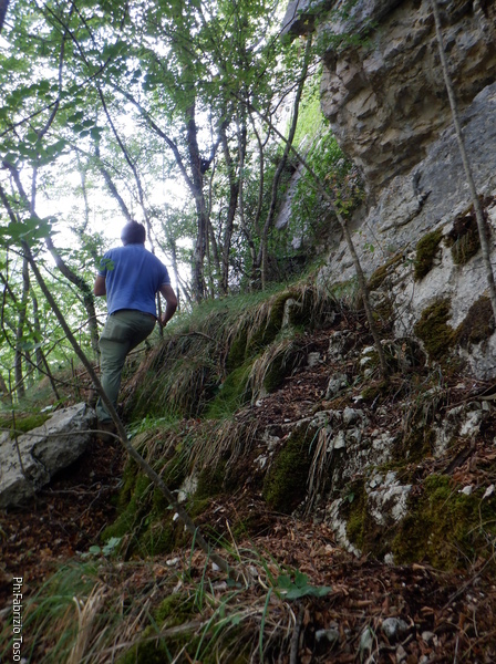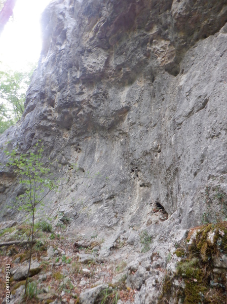 Proseguiamo il giro. Qua la parete e’ vicina al fosso e ci gira attorno, noi continuiamo a seguirla fino a che scompare dall’altro lato del fosso.