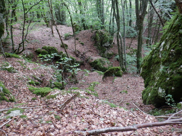 Non ci rimane che scendere il fosso. Visto che la volta scorsa lo abbiamo salito ponendo maggiore attenzione alla nostra destra, stavolta scendendo terremo nuovamente la destra per osservare bene anche il lato opposto.