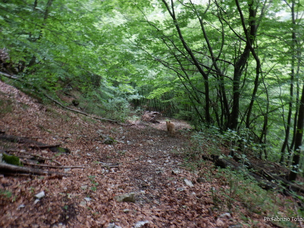 Un rumore strano mi arriva alle orecchie, mi fermo per ascoltare meglio. E’ il rumore della pioggia sulle foglie! Ma da dove arriva questa pioggia che era tutto sereno? Acqua addosso per il momento non ce ne arriva, ma il rumore ne promette. Aumentiamo il passo per tornare alla macchina prima dell’acquazzone. Luna ci precede con premura, ha sentito alcuni tuoni in lontananza.