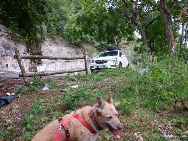 Come da indicazioni ricevute da Nerone, saliamo su dritto per dritto. C’e’ una pendenza notevole, anche Luna, nonostante il suo 4×4 ogni tanto perde di aderenza.