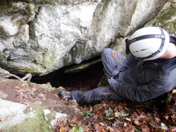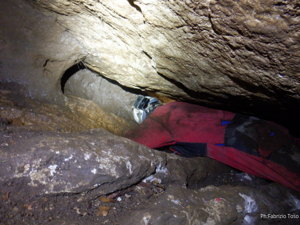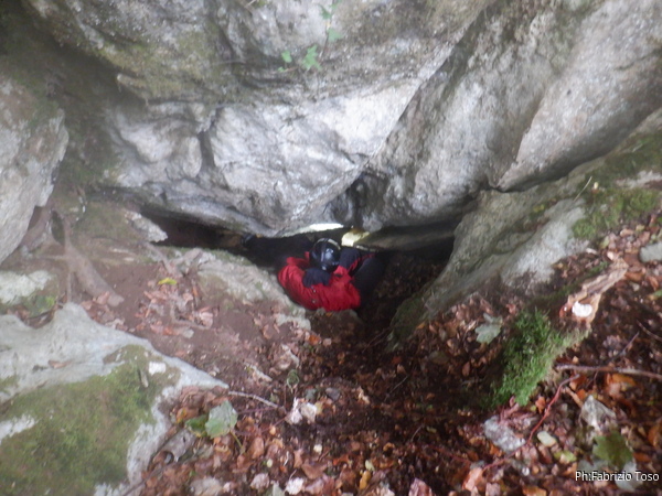 Angelo scalpita, vuole entrare. Intuendo la cosa gli chiedo di andare a dare un occhio alla grotta mentre termino i preparativi. Non se lo fa ripetere 2 volte.