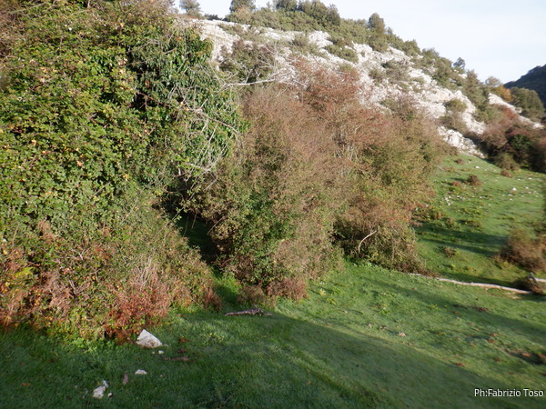 Giulio, che ha preferito dormire in un comodo B&B piuttosto che in una spartana tenda ci avvisa che e’ gia’ alla grotta. Anche io sono pronto, quindi decido di raggiungerlo. Salgo a Pian della Faggeta, mi cambio ed ora eccomi nei pressi dell’ingresso.