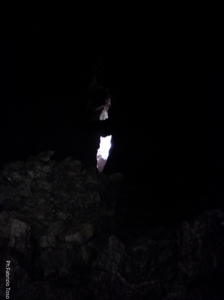 Sono al salone prima del saltino che porta all’aria aperta. Come sempre saluto il sassone crollato che per generazioni e’ stato calpestato da speleologi di tutti i tipi in attesa di scendere il saltino che lui creava. In fondo mi manca anche se cosi’ l’uscita dalla grotta e’ piu’ semplice e veloce.