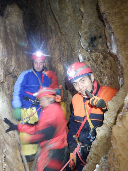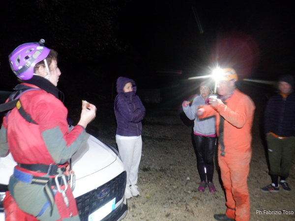 Si affacciano alla grotta i primi allievi e con loro arriva anche Fabio. Lo sento dire ad alta voce: “Qualcuno ha dimenticato il casco?”. Subito faccio un rapido check della mia attrezzatura…caspita! Ho dimenticato il casco al parcheggio. Per fortuna il buon Fabio lo ha raccattato da terra salvando la mia giornata.