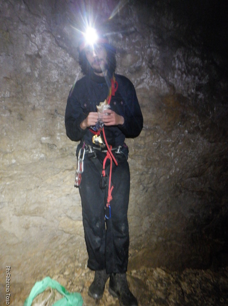 Arrivati in grotta Max inizia i preparativi per l’armo e io termino di indossare la mia attrezzatura.