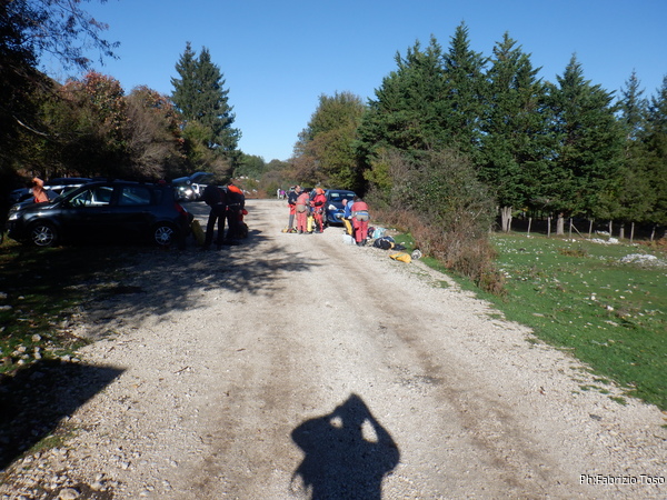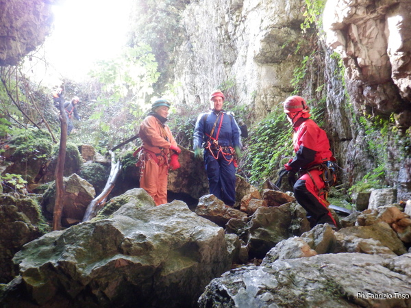 Si affacciano alla grotta i primi allievi e con loro arriva anche Fabio. Lo sento dire ad alta voce: “Qualcuno ha dimenticato il casco?”. Subito faccio un rapido check della mia attrezzatura…caspita! Ho dimenticato il casco al parcheggio. Per fortuna il buon Fabio lo ha raccattato da terra salvando la mia giornata.