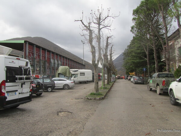 Dopo il ponte ventoso io e Luna affrontiamo la salita che porta ai campi sportivi. In fondo a questo viale, svoltando a sinistra si arriva finalmente alla meta.