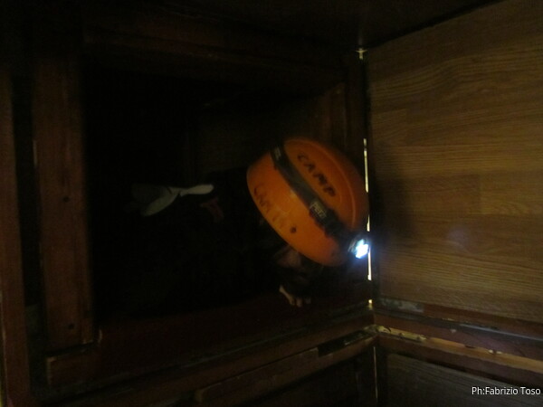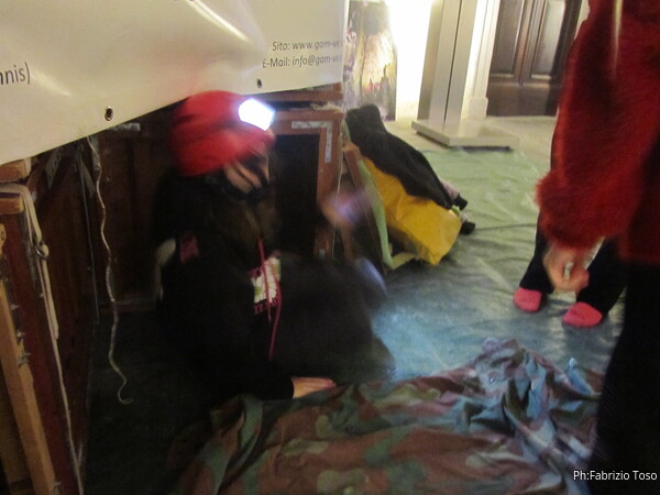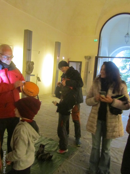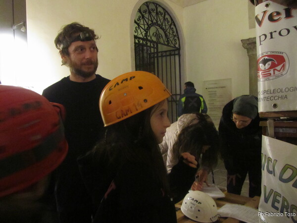Appena arriva l’artefice del fessurometro Diana si impossessa di un casco e si lancia nel buio e stretto meandro insieme agli altri bimbi in fila e fremente attesa.