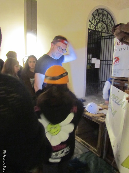 Ora decisamente meglio! Con la mappa in mano inizio a orientarmi. Per prima cosa individuo la zona dello stand materiali e ci facciamo un salto. Sono impaziente di ritirare il mio enorme zaino Steinberg fatto su misura. Quello dei materiali e’ forse l’unico posto un poco scomodo, per il resto la logistica della manifestazione e’ tutta ottimamente raccolta in pochi metri dentro Cagli. Di ritorno dal primo approccio con lo stand materiali facciamo sosta allo speleobar dove sfoggio il mio zaino nuovo. Visto che e’ anche ora di pranzo ci fermiamo dai miei amici di Sacile e Pordenone a mangiare un buon frico e polenta. Dopo il pranzo andiamo a vedere se la camera e’ comoda come ci e’ sembrata al momento di prenderne possesso. L’intenzione iniziale sarebbe quella di un rapido riposino per poi andare in giro a vedere presentazioni speleologiche da qualche parte. Purtroppo pero’ il riposino si prolunga fino a ora di cena e quindi il programma della giornata si riduce a una nuova visita allo speleobar in attesa che si faccia ora di cena. La giornata termina presto per noi. Con la muta riconoscenza di Luna, spaventatissima dai forti rumori dello speleobar, ci ritiriamo quando la serata di festa e’ appena iniziata.