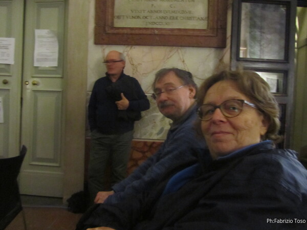 Alla fine della presentazione la sala si svuota parzialmente e riusciamo a trovare posto. Passando faccio una foto a Maria e Gianni.