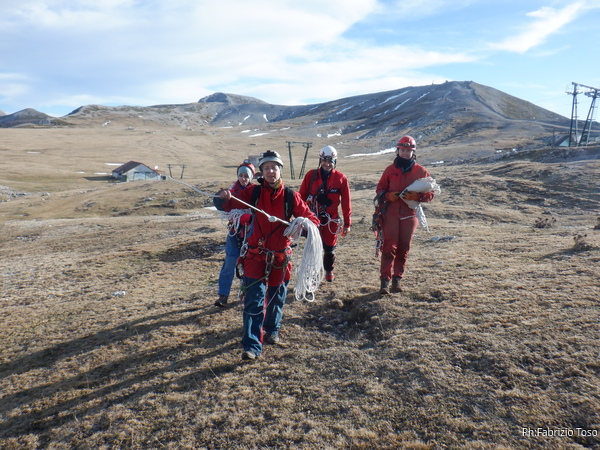 Tutti pronti? Si parte. La piana di Campocatino e’ marezzata da piccole strisce di neve, il residuo di una nevicata di qualche settimana fa. Al momento sembra di essere in primavera.