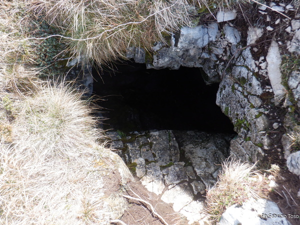 Dal “pozzo antipasto” scendiamo giu’ dritti verso la valle sottostante e prendiamo un sentiero appena accennato tra i ginepri sulla sinistra. Una ventina di metri e siamo davanti all’ingresso della “grotta degli Urli”, la nostra meta odierna.