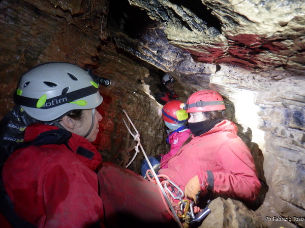 Visto che all’arrivo di Eirene inizieremo a stare stretti suggerisco ad Alessia di iniziare a passare le strettoie. Forse sarei dovuto passare per primo per mostrarle la posizione migliore per affrontare la prima strettoia ma con qualche piccolo suggerimento se la cava comunque benone. Dopo di lei passa Federica che quasi la cammina normalmente!