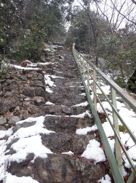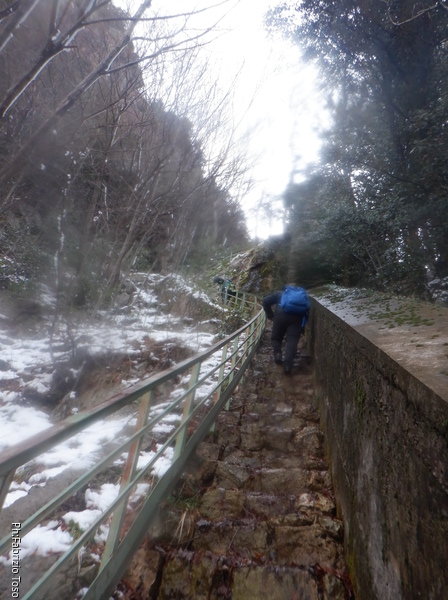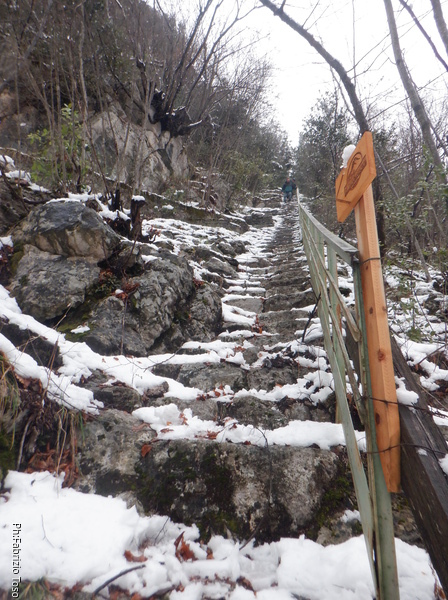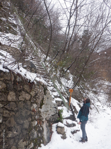 Arrivati alle scale iniziamo a scenderle con attenzione, in discesa sono temibili come ardue in salita.
