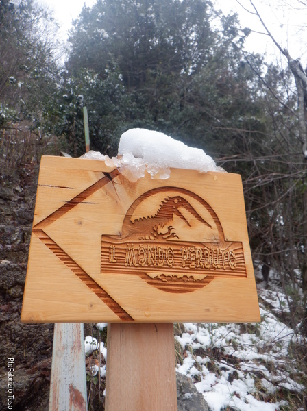 Ora siamo su un nuovo sentiero, quasi pianeggiante. Alla destra c’e’ una ripida scalinata che, a detta di un cartello in legno, dovrebbe portare in un posto dal nome invitante, “Al mondo perduto”.