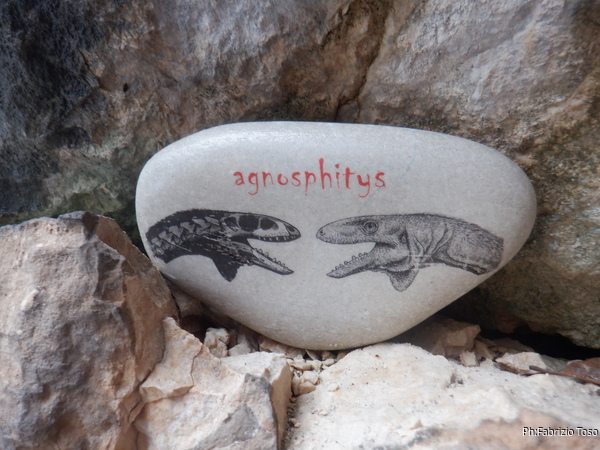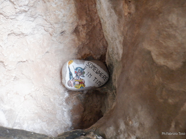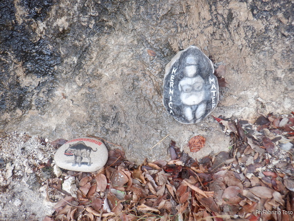 Chi l’ha attrezzata ha aggiunto un tocco artistico, ogni via e’ indicata da un sasso decorato. Me li guardo tutti, sono molto belli.