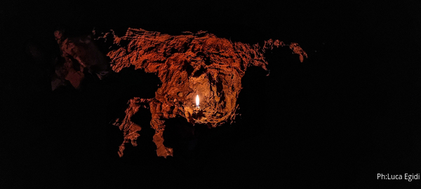 Terminato il te’ fallimentare riponiamo tutto negli zaini e ci apprestiamo a risalire. Luca aspettera’ pazientemente alla base del P50 mentre Alessia ed io lo saliremo. Luca si sistema comodo e, prendendo spunto da Nerone, si accende una candela per ingannare l’attesa riscaldandosi almeno le mani.
