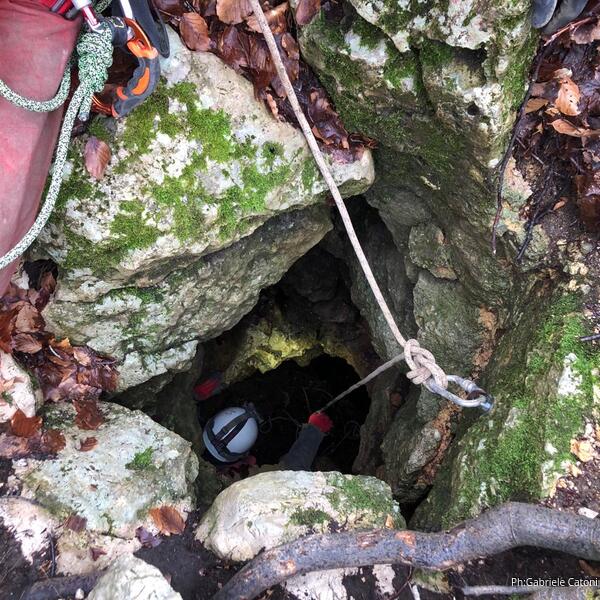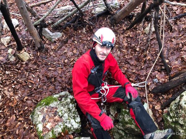 Luca sistema la corda d’ingresso partendo dal solito albero poi io mi calo per fare da guida e dare sagge indicazioni…o almeno provandoci.