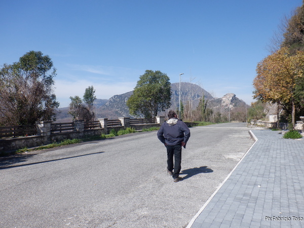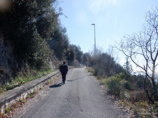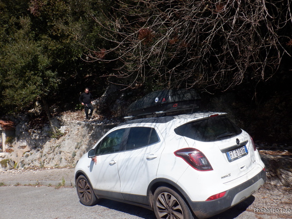 Come affrontare la ricerca? Gabriele si dice sicuro che salendo ancora lungo la strada asfaltata troveremo un sentiero che ci portera’ alla grotta senza dover affrontare faticosi dislivelli. Non conoscendo bene il posto non trovo alcuna pecca nella sua proposta quindi lasciamo la macchina dove l’abbiamo parcheggiata e saliamo a piedi per la strada.