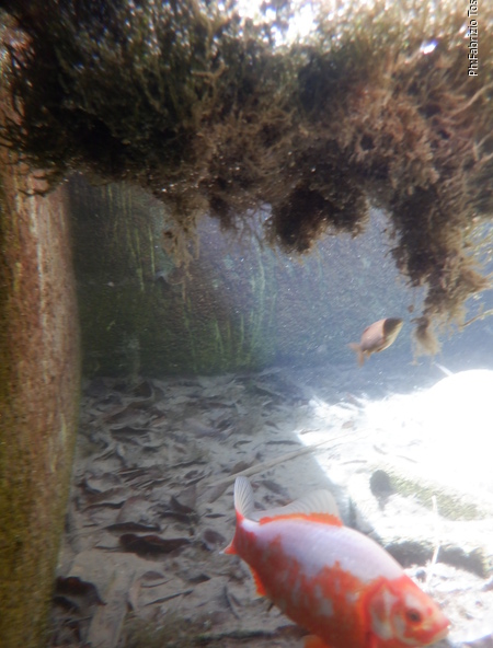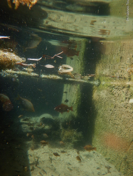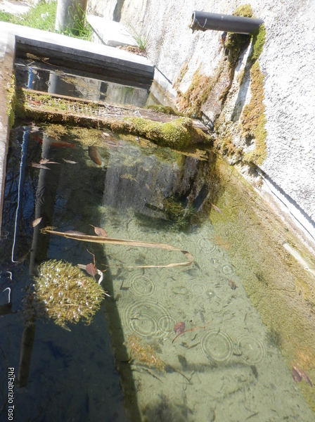 Camminiamo di buon passo ma lungo la strada troviamo un susseguirsi di terreni privati ben recintati senza tracce di sentieri. Una fontana piena di pesci e’ l’unica nota interessante che posso riportare dalla nostra ricerca.