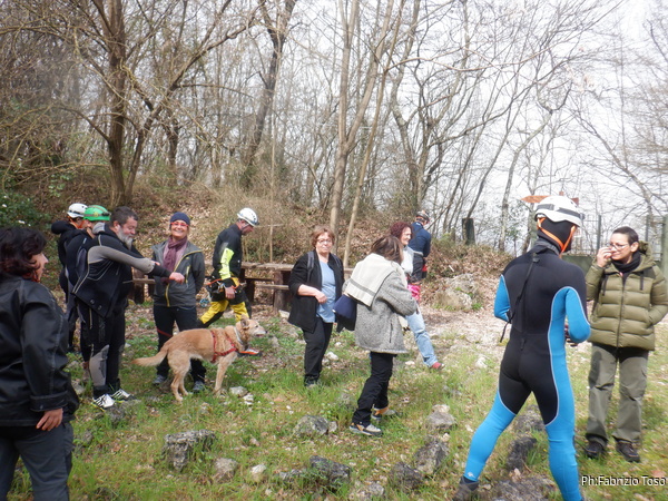 Dopo la foto inizia la diaspora, chi si avvia alla grotta, che a preparare per il pranzo che seguira’, chi a fare ancora una buona dose di chiacchiera. Giuseppe parte di corsa verso la grotta con Max, Fabio e altri, devono recuperare uno “scaldabagno” mi dicono i piu’ informati. Augusto invece lo vedo che sta intruppando e vestendo di muta un nutrito gruppo di visitatori che si appresta ad accompagnare a visitare la grotta. Io torno a sedermi nel tentativo di finire di prepararmi.