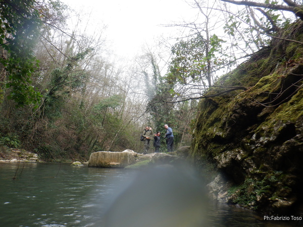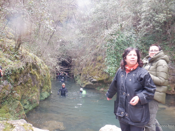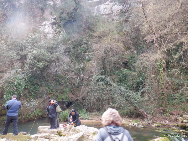 Non andiamo all’ingresso turistico della grotta ma scendiamo alla risorgenza. Una volta arrivato trovo con sollievo che c’e’ ancora qualcuno che deve entrare.
